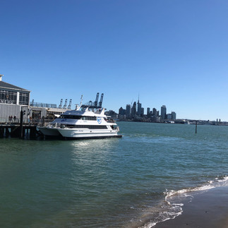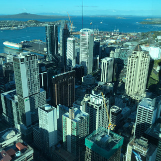 Die erneuten zwei Stunden Zeitverschiebung machen sich bemerkbar. Es wird 11 Uhr, bis wir uns aus dem Bett schälen können. Praktisch eigentlich, denn dann können wir nach dem Duschen direkt zum Frühstück übergehen. Wir haben einen 4-Scheiben-Gleichzeitig-Toaster und Butter/Marmelade im Kühlschrank. Den Rest hatten wir gestern liefern lassen. Dann geht es mit den Öffis in die Stadt. Das funktioniert hier genau gleich, wie in Sydney. App aufs Handy für den Weg und bezahlt wird egal in welchem Verkehrsmittel, mit der Kreditkarte bzw. Handy. Wir landen letztlich im Starbucks in der Queens-Street. Sehr chillig und dann baut direkt am Eingang auch noch ein Gitarren-Spieler auf und gibt ein paar Songs zum besten. Wir widmen uns ein wenig der weiteren Planung und wechseln dann die Lokalität. Genauer gesagt, wir hüpfen auf die nächste Fähre und lassen uns nach Davenport fahren. Von dort noch ein Stück mit dem Bus und dann zu Fuß die 87 Höhenmeter auf den Mount Victoria. Es handelt sich um einen Kraterrand eines ehemaligen Vulkans und von da hat man eine super Aussicht auf Auckland. Hier steht dann auch noch einen mächtige Kanone aus dem 19. Jahrhundert. Die Luft ist hier so sauber und klar, dass uns der Himmel viel schöner und blauer vorkommt, als sonstwo. Wir haben heute angenehme 24 Grad bei leichtem Wind. In der Nacht soll es auf 11 Grad runter gehen! Beim durch die Stadt schlendern kamen wir am "Sky-Tower" vorbei. Hier kann man im 53. Stock einmal außen drum herum laufen oder von dort so ähnliche wie einen Bungee-Sprung machen. Der Chef dieser Sache spricht uns an und erklärt uns alles. Vielleicht ein Andermal. Auf jeden Fall kommen wir gegen Abend noch mal hier her und lassen uns mit zwei Liften nach ganz oben fahren. Also auf 200 Meter bzw. den 60. Stock. Hier befindet sich die 360-Grad-Aussichtsplattform. Der komplett verglaste Bereich bietet eine super Aussicht auf Auckland. Wir bleiben hier bis zum Sonnenuntergang. Es entstehen unglaublich schöne Bilder! Wir werden dann mehr oder weniger rausgeschmissen, weil der Tower um 19.45 Uhr schließt. Nun sind wir hungrig, haben nur Essen für Petra zuhause und noch recht weit weg von der Wohnung. Also bestellen wir ein Uber und während der Fahrt noch Fastfood für mich. Wir haben übrigens im Hafen das Schiff Artania gesehen. Es ist das Schiff aus der Fernsehserie "Verrückt nach Meer!" die seit einiger Zeit auf ARD läuft - wer das kennt?! Wir schon! Besonders ist auch, dass öffentliche Durchsagen z. B. im Bus oder auf der Fähre, zunächst in der Sprache der Maori und dann auf Englisch gemacht werden. Viele Straßen haben auch aus beiden Sprachen ihre Bezeichnung. Und "Kia Ora" heißt nicht "herzlich willkommen" sondern "Hallo". Auckland liegt übrigens genau auf 0 Meter über dem Meersboden! Wir sind weiter gespannt auf die beiden Inseln!