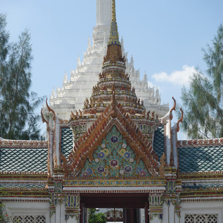 Für 500 Bath pro Personen erhalten wir je ein Dreifachticket: Palast des Kaisers Maha Vajiralongkorn, Tempelanlage und Eintritt zu einem Theater. Die Tempelanlage ist sehr schön, jedoch vieles einfach nur von Außen anzuschauen. Also weiter zum Palast. Dort ist es ähnlich. Schön aber man darf eigentlich nirgends rein. Eindrucksvoll ist es aber allemal. Nachdem wir den Palast verlassen, stehen zwei seitlich offene Busse parat, die uns zum Theater bringen. Das "Khon thai masked dance" ist eine traditionelle thailändische Tanz-Theateraufführung mit passender Musik dazu. Also Rama will seine Frau Sita aus der Gefangenschaft befreien und braucht dabei Hilfe und es muss eine Brücke gebaut werden, damit er mit seiner Armee überhaupt dort hin kommt. So die Kurzversion. Es war auf jeden Fall super interessant, die speziellen Tänze zu sehen und die für uns doch schräge Musik zu hören.
