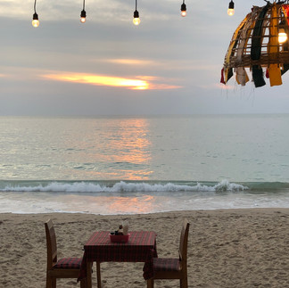 Petra ist heute früher wach und das hat einen Grund. Das Wetter ist heute richtig gut. Die Sonne scheint und es ist kaum merklich schwül. Da wir ja quasi am Strand wohnen, hüpfen wir erstmal ins Wasser. Es hat heute verrupfte Wellen die von schräg rechts kommen. Seltsam! Wir beratschlagen die weiteren Tage und kommen zum Entschluss: wir bleiben wie geplant erst noch bissle hier, auch zwecks möglichem Tauchkurs, gehen dann nochmal ein paar Tage nach Ao Nang um dann rechtzeitig für den Flug nach Kuala Lumpur in Phuket zu sein. Frühstück gibts heute auf unserer Terasse. Petra macht sich lecker Müsli mit frischen Obst vom Stand vorne an der Straße und ich bestell mir am Strand ein "American Breakfast", das ich eigentlich dann später abholen will. Aber so ist es halt mit dem Englisch...es wird an den Bungalow gebracht, was natürlich super nett ist. Wir schlemmen und schwingen uns kurz auf den Roller, um eine leckere Mint-Cocolate dort zu genießen, wo wir gestern schon waren. Danach rollern wir Richtung Südzipfel der Insel. Wir wollen zum Leuchtturm mit Aussicht um die Drohne fliegen zu lassen. Kurz davor ist Schluss, weil hier der Nationalpark beginnt und wir 400 Baht zahlen müssten und dann nur das machen könnten, statt auch noch zum Wasserfall usw.. Also drehen wir um und halten am Bambo-Beach. Ein kleiner Strand mit Palmen, ner kleinen Bar und hier ist es extrem chillig, wie auch die Kühe hier finden! Wir schnappen die Drohne und machen ein paar Flüge. Die Videos gibt es hier! Im Zurück halten wir nochmal an unserer Lieblings-Smoothie-Bar und sind die einzigen Gäste! Es gibt Mango-Almond-Latte für Petra und Butterfly-Pea with Lemon-Soda für mich. Dabei werden wir von einem Affen beobachtet. Die sehen wir heute immer wieder. Zwischendurch meldet sich das Tauchcenter wegen morgen. Abfahrtszeit steht nun...7.25 Uhr! Zurück im Bungalow geben wir den Roller wieder zurück und machen uns frisch für den Strand und die angekündigte Feuershow. Vorher muss aber der Bart noch ab wegen der Tauchermaske. Am Strand gibts dann erst Frühlingsrolle für beide, dann Tom Kah für Petra und für mich "hot pan chashew nuts with beef" was brennend am Tisch serviert wird. Der Kellner kippt immer wieder Soße drüber die brennt, bis er es dann mit einem Deckel löscht. Alles schmeckt super und dann beginnt kurz nach 20 Uhr die Feuershow. Drei Männer wirbeln brennende Kugeln, Stäbe und Glutnester durch die Luft. Gut 20 Minuten dauert die coole Show, die dreimal die Woche stattfindet. Wir sind begeistert! Morgen also "Probetauchen" und übermorgen Standortwechsel!
