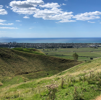 Die Nacht war ein wenig unruhig, weil es nicht so gute Nachrichten verarbeiten mussten. Ein Vorteil: Petra war so früh wach, dass sie den Sonnenaufgang festgehalten hat. Spektakulär bis der Akku leer war. Mir war das eindeutig zu früh! Später klärt sich dann die Nachricht ins Positive und wir steigen wieder in unsere Planung ein. Nachdem wir gestern am Wandern waren, sind wir nun im Flow und greifen erneut an. Ziel ist heute Papamoa Hills. Eine Hügelgruppe unweit von uns die landschaftlich dem Mägdeberg in Mühlhausen sehr ähnelt. Allerdings ist die Flora und Fauna eine ganz andere, mit Ausnahme der Kühe und Schafe. Die gibts in Mühlhausen auch. Auch hier handelt es sich um ehemalige Plätze der Maori, die nun als Wanderwege schön angelegt und beschildert sind. Es geht also vom Parkplatz stets bergauf und das auf gut ausgebauten Schotterwegen. Ab und zu überwinden wir dank Trittstufen ein paar Weidezäune und haben einen super Rundumblick über die Gegend. Wobei da dann noch ein Unterschied zu Mühlhausen zu Tage tritt: man sieht das Meer! Nach gut zwei Stunden Wanderung und gut 500 Höhenmetern, kommen wir recht geflasht und ziemlich kaput wieder am Parkplatz an. Da ich schon seit geraumer Zeit einen Defekt am rechten Wanderschuh habe, düsen wir noch in zwei Shopping-Malls, werden aber nicht fündig. Noch kurz Lebensmittel besorgt und schon steh ich am Grill. Heute gibts Cheese-Burger ohne Burger und Würstle (ohne Wurst) für Petra. Außerdem sind neben uns neue Gäste eingezogen. Sie sind aus Cambridge (England) und für drei Wochen im Urlaub hier. Schade für sie! Wir werden länger hier sein...