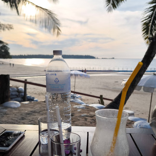 Tja, schon sind wieder drei Nächte rum und wir ziehen um ins "The Oasis Resort" auch hier in Khao Lak. Unsere Vermieterin ist so nett und fährt uns mit ihrem Pickup zum neuen Hotel, das eigentlich 14 kleine Ein-Zimmer-Bunkalows sind, die alle zu nem Pool zeigen. Der Check-In dauer ein wenig, weil der Drucker streikt. Wir dürfen früher in den Bungalow und mieten umgehen einen Roller. Endlich!!!! Mit zwei "Eierschalen" auf dem Kopf und Badesachen, schwingen wir uns aufs Zweirad und fahren zum örtlichen Nationalpark. Wir bekommen ein Ticket für je 100 Bath und einen Lageplan der uns durchs Gelände führen soll. Am örtlichen Campingplatz angekommen, klettern wir über ein paar Felsen und der Rest ist dann wie immer: wir haben nen Plan, verlaufen uns und kommen doch irgendwie irgendwo an. Nämlich an einem kleinen netten Strand. Wir packen die neuen Schnorchel-Sets aus und müssen schnell feststellen: Sandstrand ist kein Schnorchelstrand. Und außerdem beginnt es zu tröpfeln. Also alles schnell zusammen gepackt und den schnellsten Weg hoch zur Straße genommen. Dabei laufen wir durch ein Djungel-Resort...auch nicht schlecht mit Strandblick! Oben angekommen laufen wir Richtung Roller-Parkplatz und drehen nach 100m schnell um, denn ist fängt an richtig zu regnen. Also stehen wir unter bei ner Rezeption. Dort gibts an der Straße ein kleines Häuschen. Darin sitzt ein Mann. Immer wenn Gäste über die Straße wollen, regelt er mit nem roten Leuchtstab und seiner Pfeife, den Verkehr. Wir düsen Richtung Norden zum "White Sand Beach". Und dort ist es der Wahnsinn! Schneeweißer Sand, eine kleine Anlage mit Hüttchen, Bars, chilligen Tischen unter Palmen. Ein Traum! Wir lassen es uns gut gehen: Mocha Frappe, Bierchen, Beef with Pepper, Satay Chicken, Frühlingsrolle, Reis mit Gemüse und dazu ein Sonnenuntergang. Nun sind wir glaub angekommen. Das tägliche Durchschwitzen ist nun kein Problem mehr. Das täglich mindestens zweimal Duschen auch nicht. Unsere neue Unterkunft ist top und morgen steht für mich ein Schnorcheltag mit Speedboot und allem SchnickSchnack auf dem Programm. Übrigens liegt Khao Lak an einer quasi Schnellstraße mit zwei Fahrstreifen je Richtung. Der Standstreifen ist nur dann einer, wenn da Einer steht. Wenn nicht, dann fahren hier die Roller und Roller mit Beiwagen. Das ist ungeschriebenes Gesetz. Und fährt man an einem kleinen Tempel vorbei, hupt man einmal!