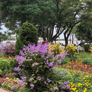 Auch wenn wir noch in Bangkok weilen, beschäftigen wir uns mit den nächsten Stationen. Morgen geht es mit Taxi und Bus nach Pattaya und danach...nach Ko Samui. Wir suchen also auf der Khaosan-Road das Reisebüro, wo wir schonmal waren. Wir latschen in eins rein...es ist nicht das vom letzten Mal, aber egal. Wie sich zeigt, sind wir bei Tisha sehr gut aufgehoben. Es ist nicht so einfach, da der Weg von Bangkok aus per Zug und Fähre nach Ko Samui geht und genau jener Zug, wie auch der nach Chiang Mai, stark gebucht ist. Und tatsächlich findet sie für uns eine Verbindung am 12.11. über Nacht in der zweiten Klasse mit Klimaanlage. Es ist ein Nachtzug mit Schlafmöglichkeit nach Surat Thani. Von dort geht dann die Fähre. Als sie online zwei Tickets ergattert, macht sie fast Luftsprünge und ist über glücklich. Wir sind es demnach auch. Die Tickets bekommen wir per Whatsapp und kommen beim Bezahlen noch ein wenig ins Reden über den aktuellen König, seinen Vorgänger und was früher besser war in Thailand. Am besten sei wohl Rama V gewesen, denn der hat auch die Eisenbahn bauen lassen. Mit der Buchung in der Tasche suchen wir uns was zum Frühstücken und schlendern dann ein wenig durch Bangkok. Mit der Zeit nerven ein wenig die Typen in der Straße, die einem ständig irgend welche Dinge anbieten wie Tuk Tuk, Holzfiguren, Maßanzüge oder ne Bootstour. Wir beschließen, uns erstmal und erstmals eine Massage zu gönnen. Rücken und Nacken eine halbe Stunde für je 200 Bath. Und was soll man sagen...herrlich! Dann machen wir uns auf den Weg zurück und kommen noch am Phra Sumen Fort vorbei. Es ist eine kleine, schöne Festung aus dem 18. Jahrhundert, welche um ringt ist, von einem kleinen schönen Park. Mit dem Wassertaxi fahren wir zurück zur Haltestelle Wat Arun und sitzen ein wenig am Kanal direkt bei unserer Unterkunft. Noch was zu den verkleideten Touristen am Wat Arun: tatsächlich ist es Touri-Trend, sich in Miet-Kleidung zu schwingen, um dann Fotos zu machen. Ich vermutete religiöse Gründe, lag aber falsch. Wir kühlen im Zimmer ab und gehen dann um die Ecke zum Essen. Lecker und erstes Leo-Bier und Thailand-Gin-Tonic. Letzteres ist nicht zu empfehlen...Morgen früh also auf nach Pattaya!