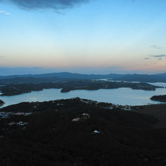 Heute sind wir mal so richtig faul. Hier wurde in der Nacht die Uhr umgestellt und zwar eine Stunde vor. Bis wir das geblickt haben, ist der Morgen schon fast rum. Da hilft nur ein Käffche beim "third wheel". Etwas wacher gehts dann zurück zum Frühstück und meine Wunden behandeln. Ich bin gestern von Moskitos heimgesucht worden und hab es erst gemerkt, als es zu spät war. Die Dinger sind fies, da man sie weder fliegen hört, noch spürt...naja, erst halt, wenn es zu spät ist. Wir verdödeln den Nachmittag bis Petra die Idee hat, den Sonnenuntergang anzuschauen. Dazu fahren wir ein paar Minuten zu einem unscheinbaren Wanderweg-Einstieg. Tja, und dann wird es spannend, denn angeschrieben sind 40 Minuten Wandern, es bleiben aber nur knapp 30, bis die Sonne untergeht. Also packen wir den Turbo aus und laufen die 1,4 Kilometer in knapp 18 Minuten und das auch noch kontinuierlich bergauf. Zum Glück haben wir die Drohne dabei, denn der Auskuck zeigt eigentlich in die falsche Richtung. Wir machen coole Bilder und Videos. Außer uns war noch ein Pärchen da und ein Frau, die wohl zum trainieren an uns vorbei gejoggt war. Beide verschwinden recht schnell, also lassen wir die Drohne los. Als die Sonne dann fast verschwunden ist, geht es den Weg wieder zurück. Im fast Dunkeln müssen wir mit Handy-Licht durch den Dschungel laufen und es ist ein wenig schwummrig. Wir sind ganz schön ins Schwitzen gekommen, aber die Bilder waren es alle Mal wert.